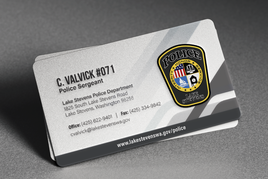 Over the past decade, the City of Lake Stevens has experienced significant growth, leading to an expansion of the police department’s team to better serve the community. In September 2021, the department opened a new location south of the lake and sought a refreshed, branded business card to match their evolving identity. I created a modern, professional design that staff members could proudly present as a representation of their commitment and service.